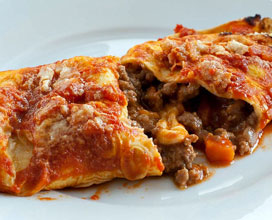 Avvolgete le frittate di pasta a formare dei cannoli e metteteli in una teglia.