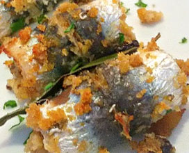 Infilzate in stuzzicadenti alternandoli, un pezzezzo di formaggio ed uno di sarda.