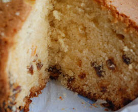 Sbattete in una terrina le uova con lo zucchero, quando avrete ottenuto un composto omogeneo e spumoso, incorporate 120 g di burro e l'uvetta strizzata e passata nella farina.
